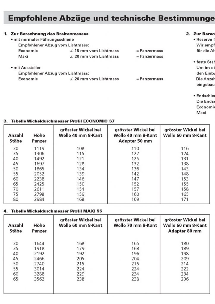 Empfohlene Abzüge und technische Bestimmungen zur Berechnung der Panzermasse