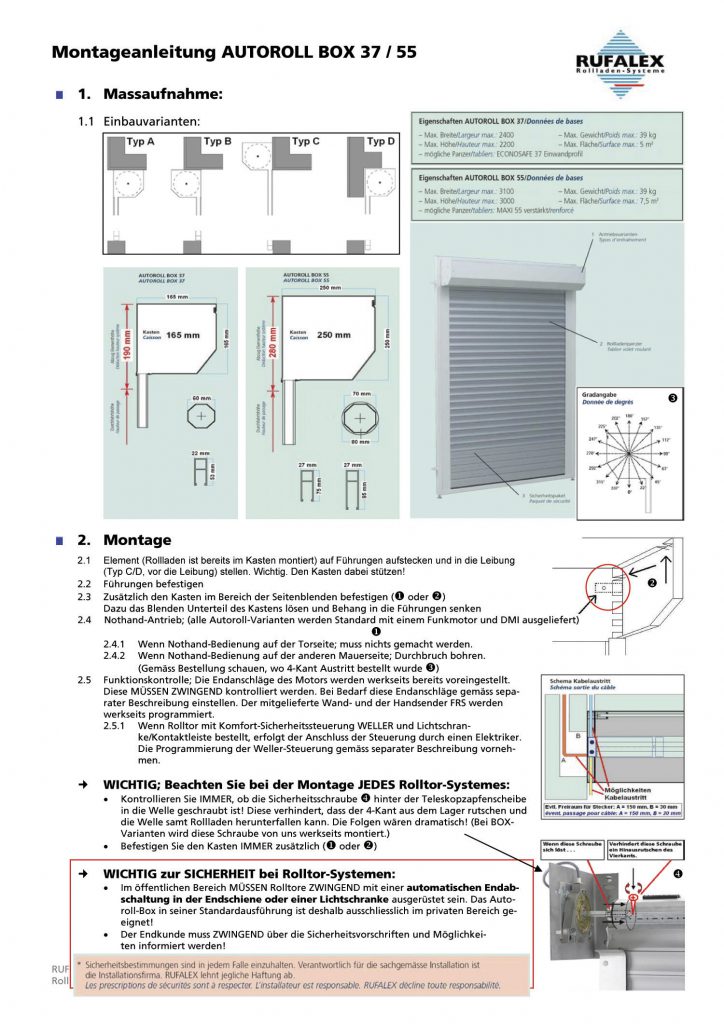 Einbauhinweise zum Rolltorsystem AUTOROLL BOX 37 / AUTOROLL BOX 55