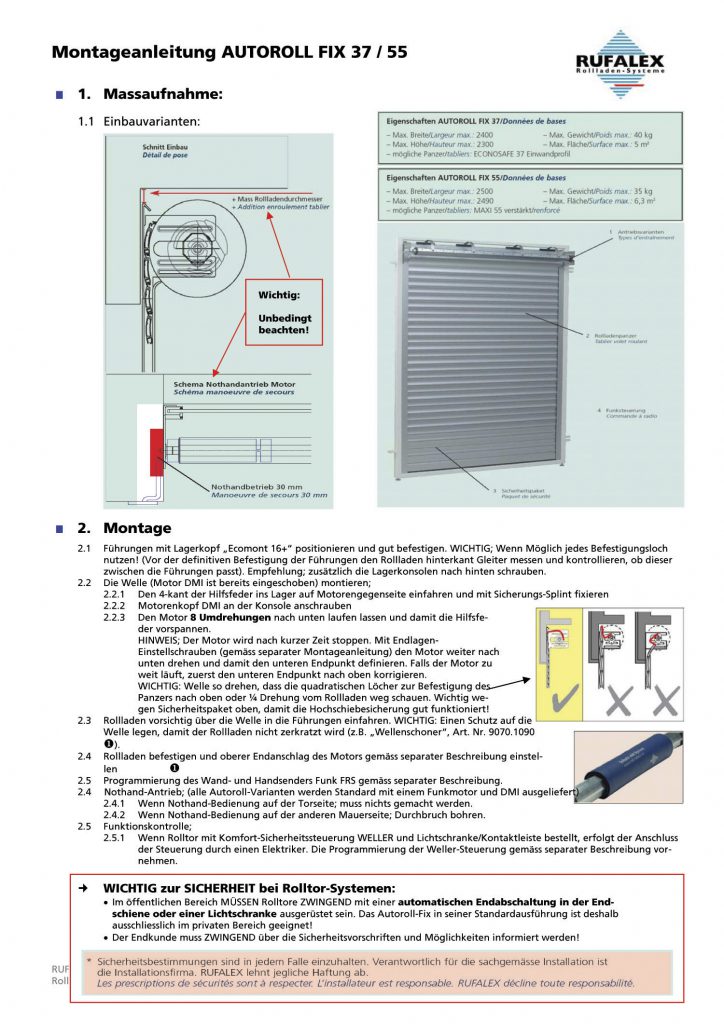 Einbauhinweise zum Rolltorsystem AUTOROLL FIX 37 / AUTOROLL FIX 55