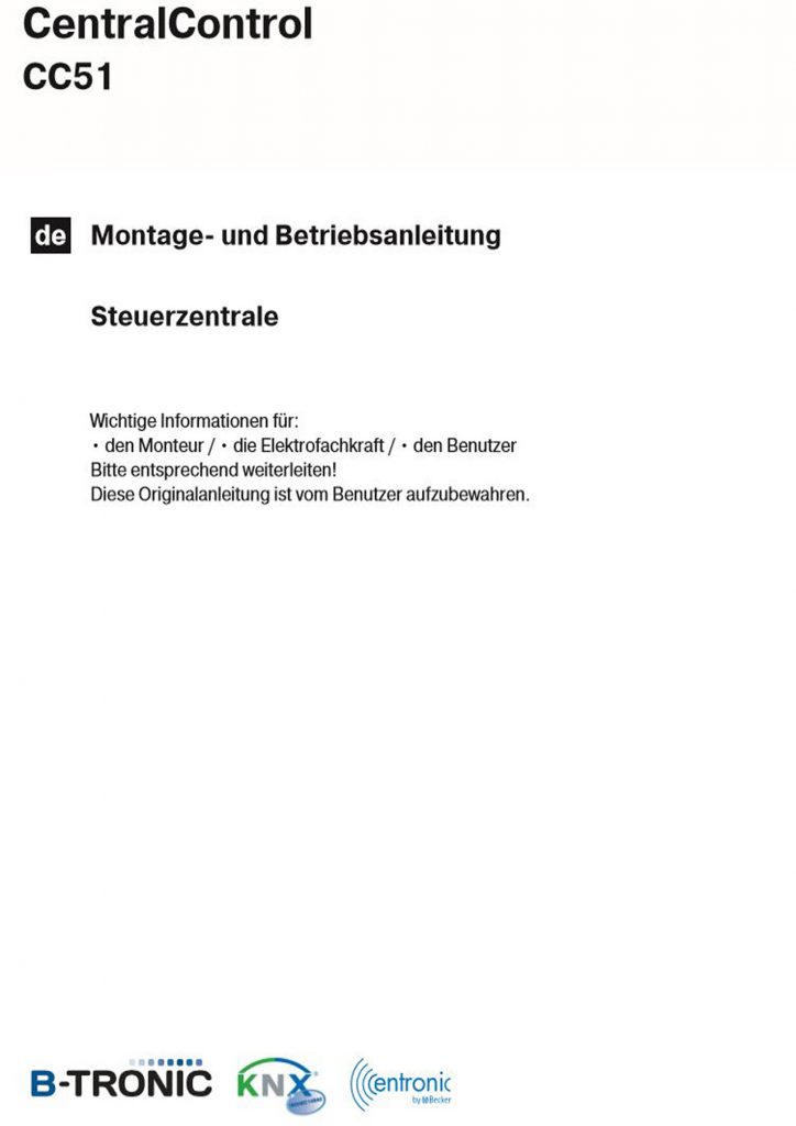 Becker B-Tronic CC51Zentralsteuerung Becker B-Tronic für KNX-RF FunkantriebeDownload Bedienungsanleitung (deutsch, PDF) Mode d'emploi (français, PDF)TechinfoInstallationsanleitungenSteuerungenHersteller: BeckerEingesetzt: 20160101