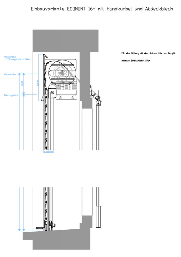 ECOMONT 16+ Vertikalschnitt mit Handkurbel und Abdeckblech