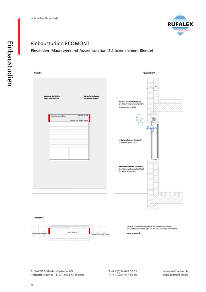 ECOMONT Einschalen- Mauerwerk mit Aussenisolation und SchürzenelementDownload Einbaustudie (deutsch, DXF) Einbaustudie (deutsch, PDF) Einbaustudie (deutsch, DWG)SystemRollladen-SystemeEinbausystemeECOMONT 12+TechinfoDownloadsEinbaustudienHersteller: RUFALEX