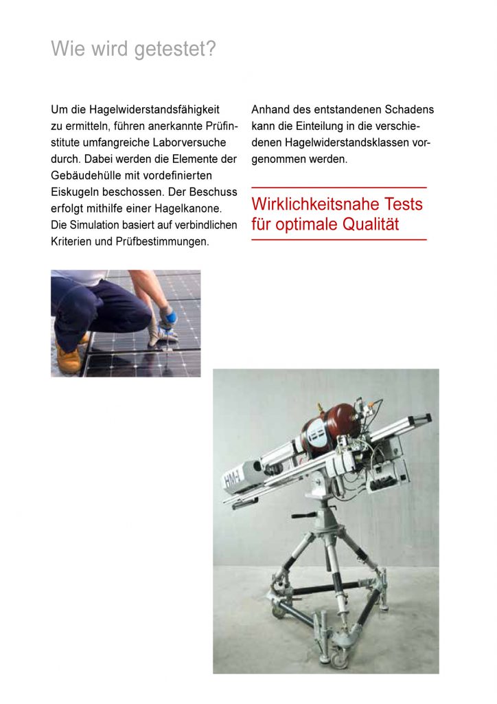 Hagel – Wie wird getestet?Download Wie wird getestet? (deutsch, PDF) Comment les tests sont-ils réalisés? (français, PDF)TechinfoNormenHagelschutzHersteller: VKF AEAI