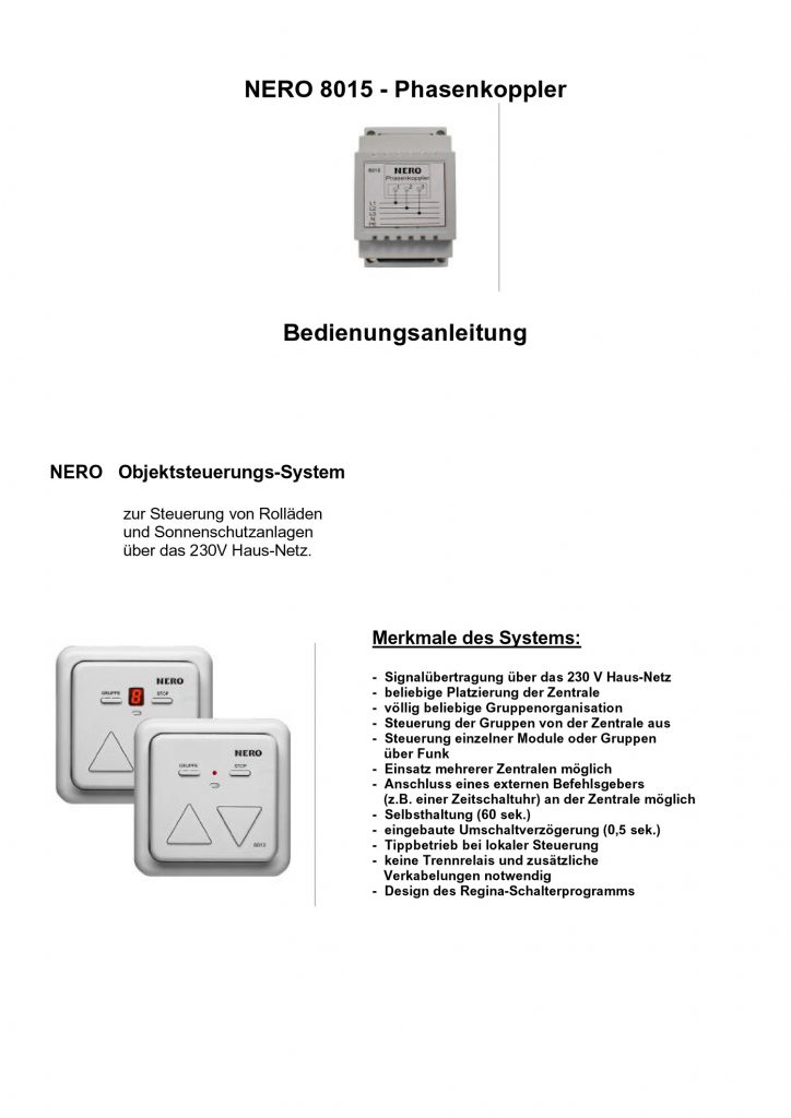 Anleitungsbeschreibung inklusive Anschlussschema des Nero Phasenkopplers 8015