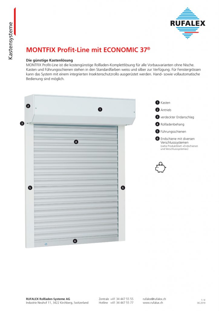 MONTFIX Profit-Line ECONOMIC 37Technisches ProdukteblattDownload MONTFIX PL mit ECONOMIC37 MONTFIX PL avec ECONOMIC37SystemRollladen-SystemeKastenystemeMONTFIX Profit-LineRollladenECONOMIC 37®TechinfoTechnische ProdukteblätterRollladen-SystemeKastensystemeHersteller: RUFALEX Rollladen-Systeme AGEingesetzt: 20120901
