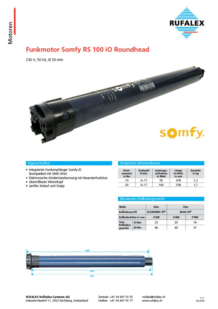 Funkmotor Somfy RS 100 iO RoundheadTechnisches ProdukteblattDownload Somfy Oximo RS 100 iO Roundhead deutsch Somfy-Oximo-RS-100-iO-Roundhead-francaisTechinfoTechnische ProdukteblätterMotorHersteller: Somfy