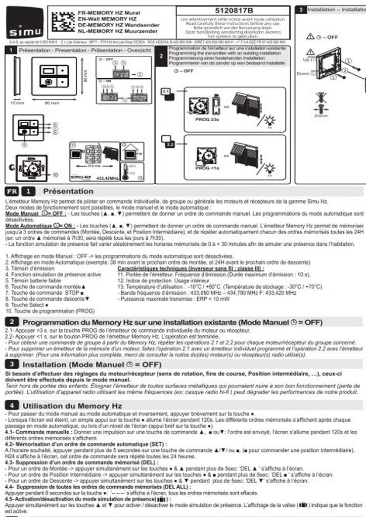 Anleitungsbeschrieb inkl. Anschlussschema SIMU Funkwandschalter Memory Hz
