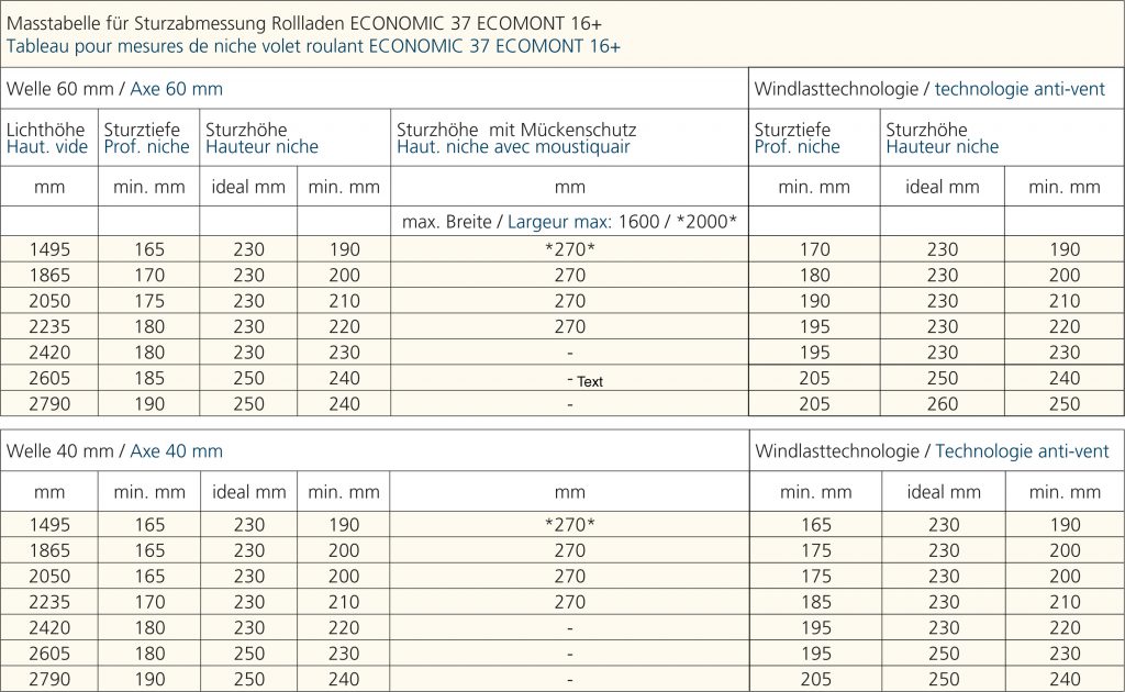 Sturzmasse Ecomont 16+ ECONOMIC 37 (PDF, deutsch, français)