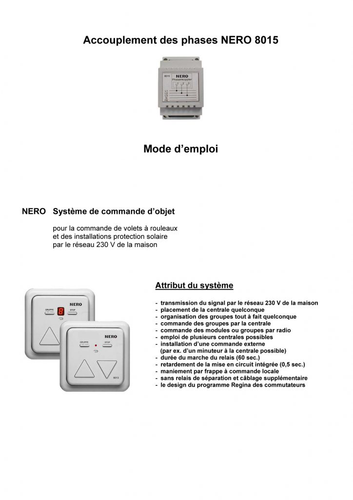 Mode d’emploi avec schéma de câblage de l’accoupleur de phase Nero 8015.