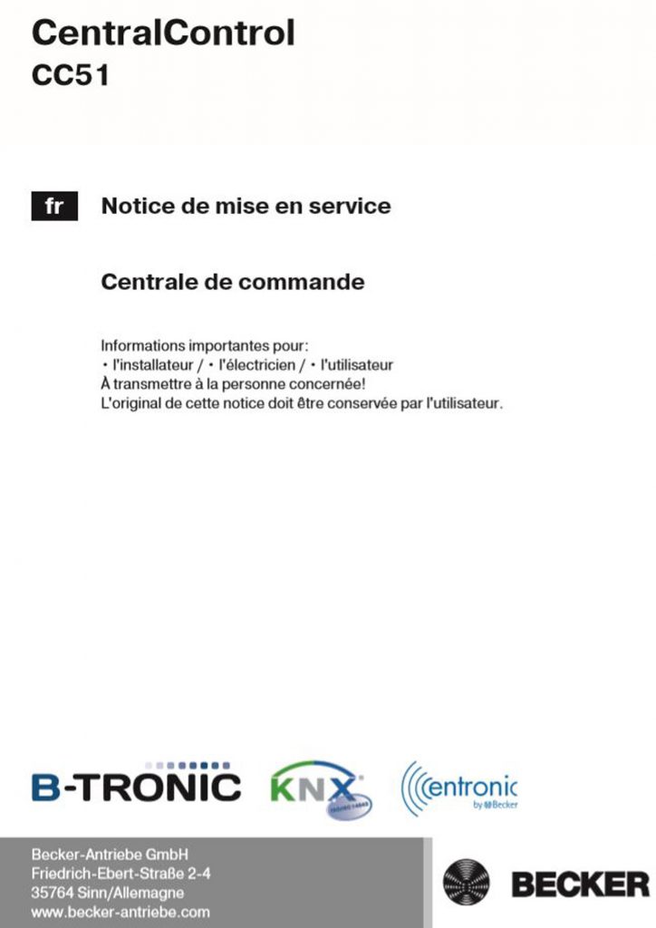 Centrale Becker CC51 B-TronicCommande centrale Becker pour récepteurs et moteurs Radio KNX RFTélécharger Mode d'emploi (français, PDF) Bedienungsanleitung (deutsch, PDF)TechinfoMode d'emploicommandescommandes radioBecker B-Tronic (KNX RF)Fabricant: BeckerUtilisé: 20160101