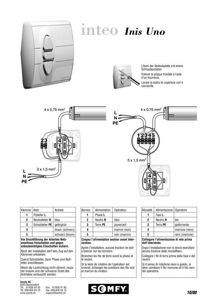 Commutateur Somfy InisMode d’emploi avec schéma de câblage du commutateur Somfy Inis.Télécharger Mode d'emploi (français, PDF) Bedienungsanleitung (deutsch, PDF)TechinfoMode d'emploicommandescommandes filairesFabricant: SomfyUtilisé: 20040101