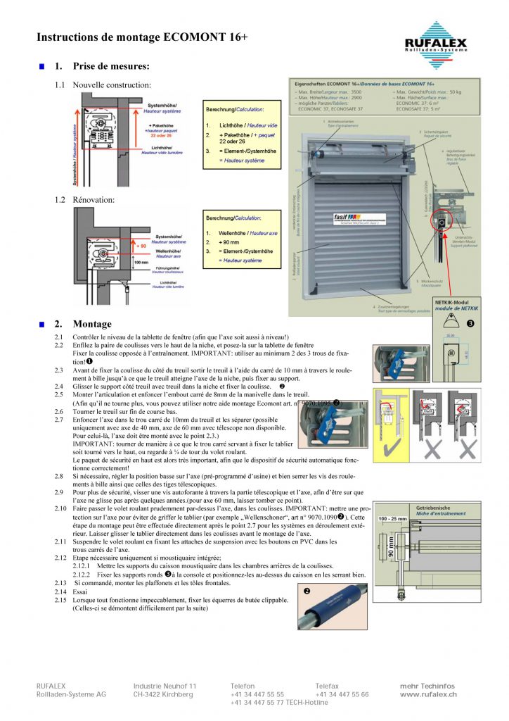 Notice et remarques de montage pour système de volet roulant ECOMONT 16+