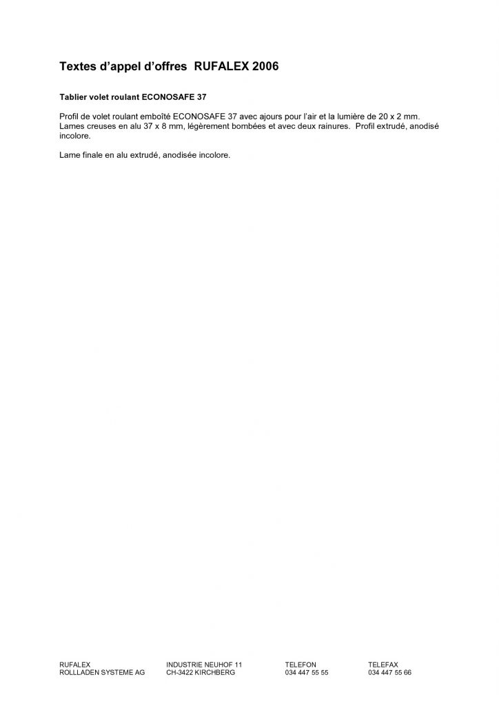 ECONOSAFE 37Texte d’appel d’offres ECONOSAFE 37Télécharger Texte d’appel d’offres (français, Word) Ausschreibungstext (deutsch, Word)Systèmesystèmes de volets roulantssystème à caissonMONTFIXsystèmes de montageECOMONT 16+Techinfotextes d'appel d'offresvolets roulantsFabricant: RUFALEX
