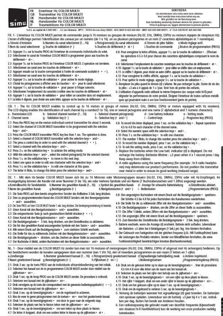 Mode d’emploi avec schéma de câblage d’émetteur portable SIMU 16 canaux