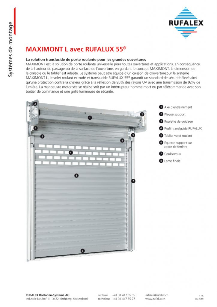 Archivé - plus valideMAXIMONT L RUFALUX 55Feuille de produitTélécharger MAXIMONT L avec RUFALUX55 MAXIMONT L mit RUFALUX55Systèmesystèmes de portessystèmes de montageMAXIMONT LVolet roulantRUFALUX 55®TechinfoFeuille de produitssystèmes de portessystèmes de montageFabricant: RUFALEX Rollladen-Systeme AGUtilisé: 20190603