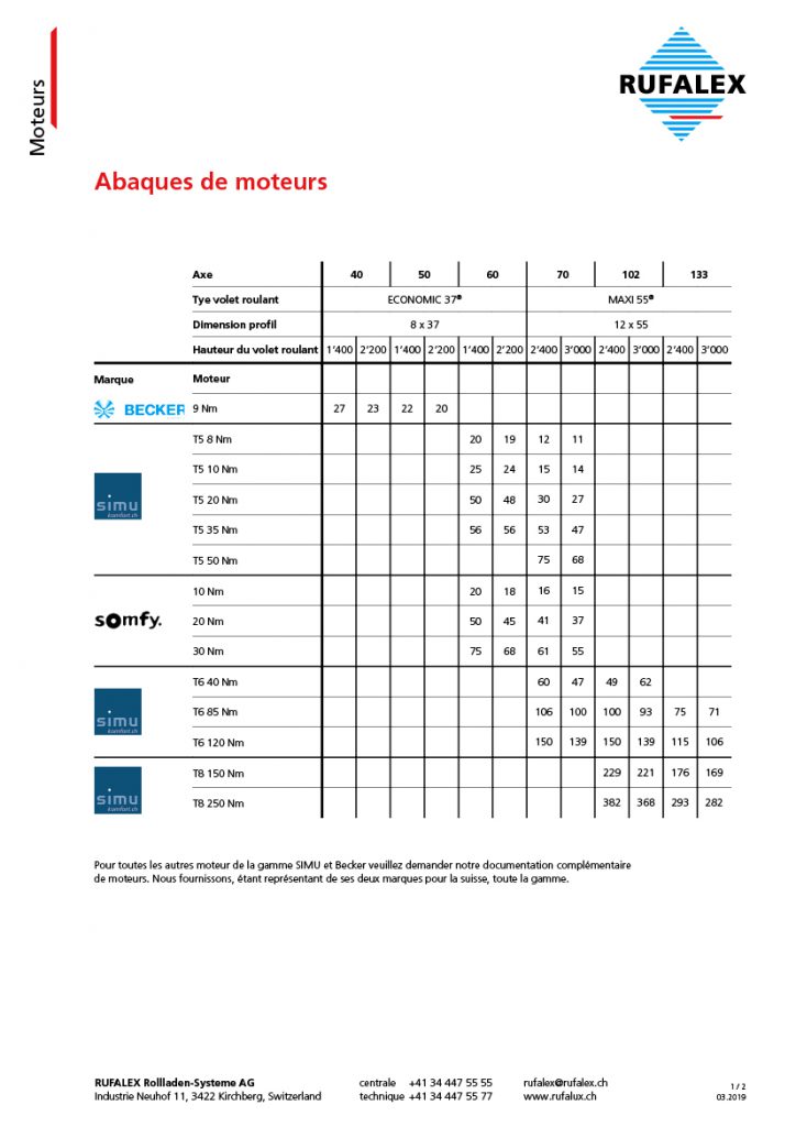 Abaques de moteursFeuille de produitTélécharger Abaques de moteurs Hilfstabelle für MotorenTechinfoFeuille de produitsmoteurFabricant: RUFALEX Rollladen-Systeme AG