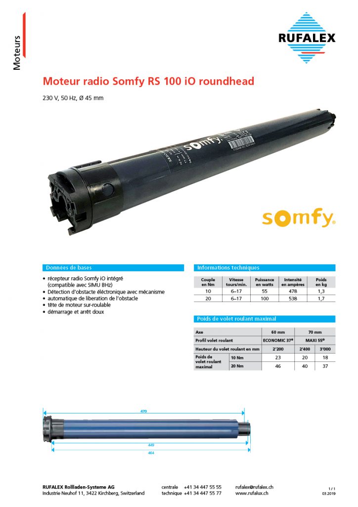 Moteur radio Somfy RS 100 iO roundheadFeuille de produitTélécharger Somfy-Oximo-RS-100-iO-Roundhead-francais Somfy Oximo RS 100 iO Roundhead deutschTechinfoFeuille de produitsmoteurFabricant: Somfy