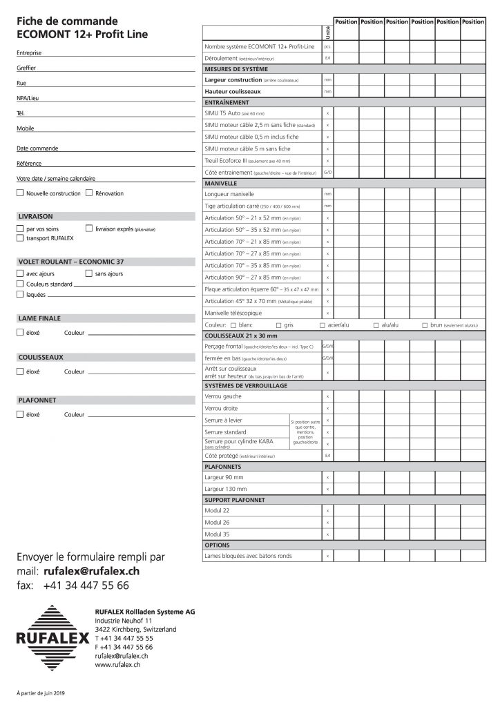 Fiche de commande pour systèmes de montage ECOMONT 12+ Profit-Line