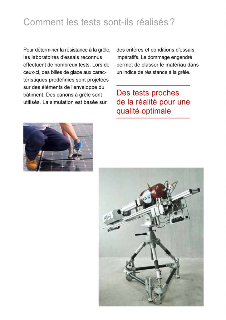 Grêle – Comment les tests sont-ils réalisés?Télécharger Comment les tests sont-ils réalisés? (français, PDF) Wie wird getestet? (deutsch, PDF)TechinfoNormeRésistance à la grêleFabricant: VKF AEAI
