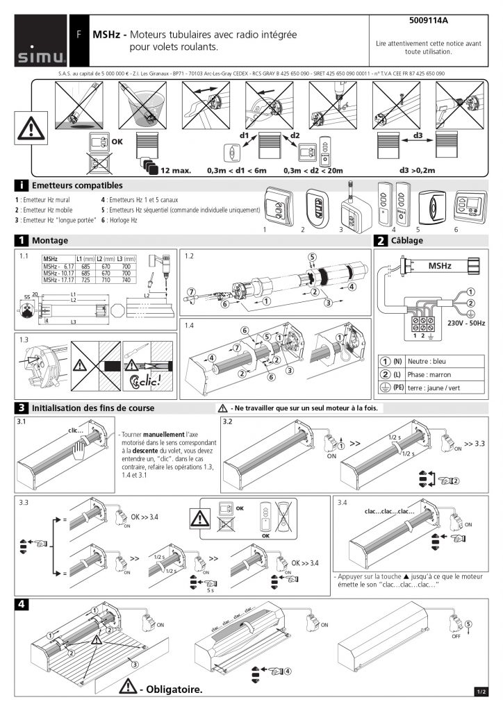 Moteur à réglage des fin de course automatique et réduction du couple lors de la déscente. Commande par radio grâce au recépteur à radio 433 Mhz intégrée. Diamètre du tube du moteur, 45 mm. Couple jusqu’à 17 Nm. 230 Volt.