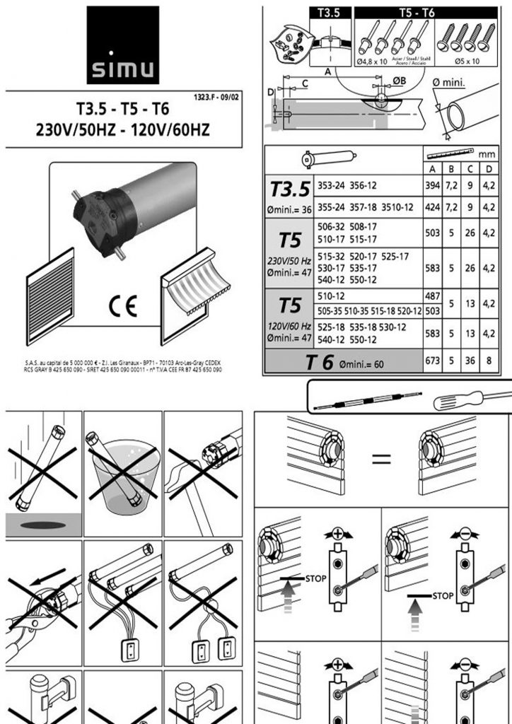 Moteur à réglage des fin de course progréssif par une vis de réglage, placé à la tête du moteur. Diamètre du tube du moteur, 36 mm. Couple jusqu’à 10 Nm. 230 Volt.