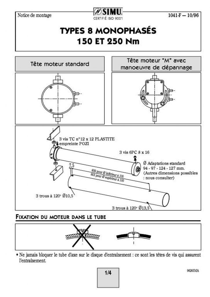 Moteur à réglage des fin de course progréssif par une vis de réglage, placé à la tête du moteur et système de dépannage du moteur intégré. Diamètre du tube du moteur, 80 mm. Couple jusqu’à 250 Nm. 230 Volt.