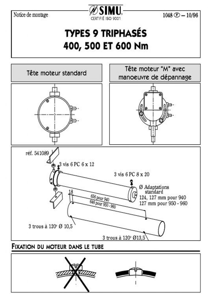 Moteur à réglage des fin de course progréssif par une vis de réglage, placé à la tête du moteur et système de dépannage du moteur intégré. Diamètre du tube du moteur, 97 mm. Couple jusqu’à 900 Nm. 450 Volt.