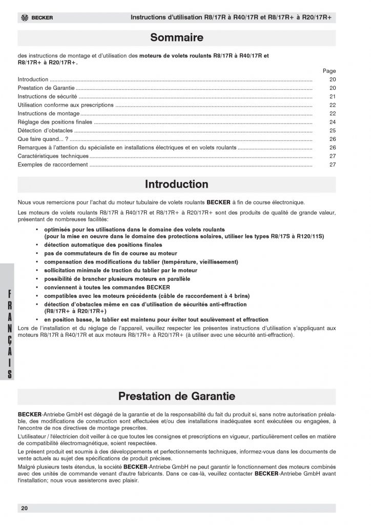 Moteur tubulaire Becker Série R