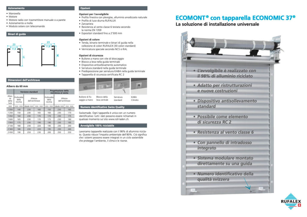 Scheda tecnica del cliente finale ECOMONT ECONOMIC 37Scarica Scheda tecnica (italiano, PDF) Fiche technique (français, PDF)Datenblatt (deutsch, PDF)Sistemasistemi di tapparellesistemi di montaggioECOMONT 12+ECOMONT 12+ Profit-LineTapparelleECONOMIC 37®TechinfoSchede tecniche per i clienti finali